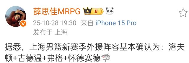 很早就确定了古德温和洛夫顿之后,上海男篮在外援挑选方面放慢了速度,不过就在距离新赛季还有不到两个月的时候,上海男篮确定了全部四名外援,分别是古德温、洛夫顿、弗格和怀特塞德。